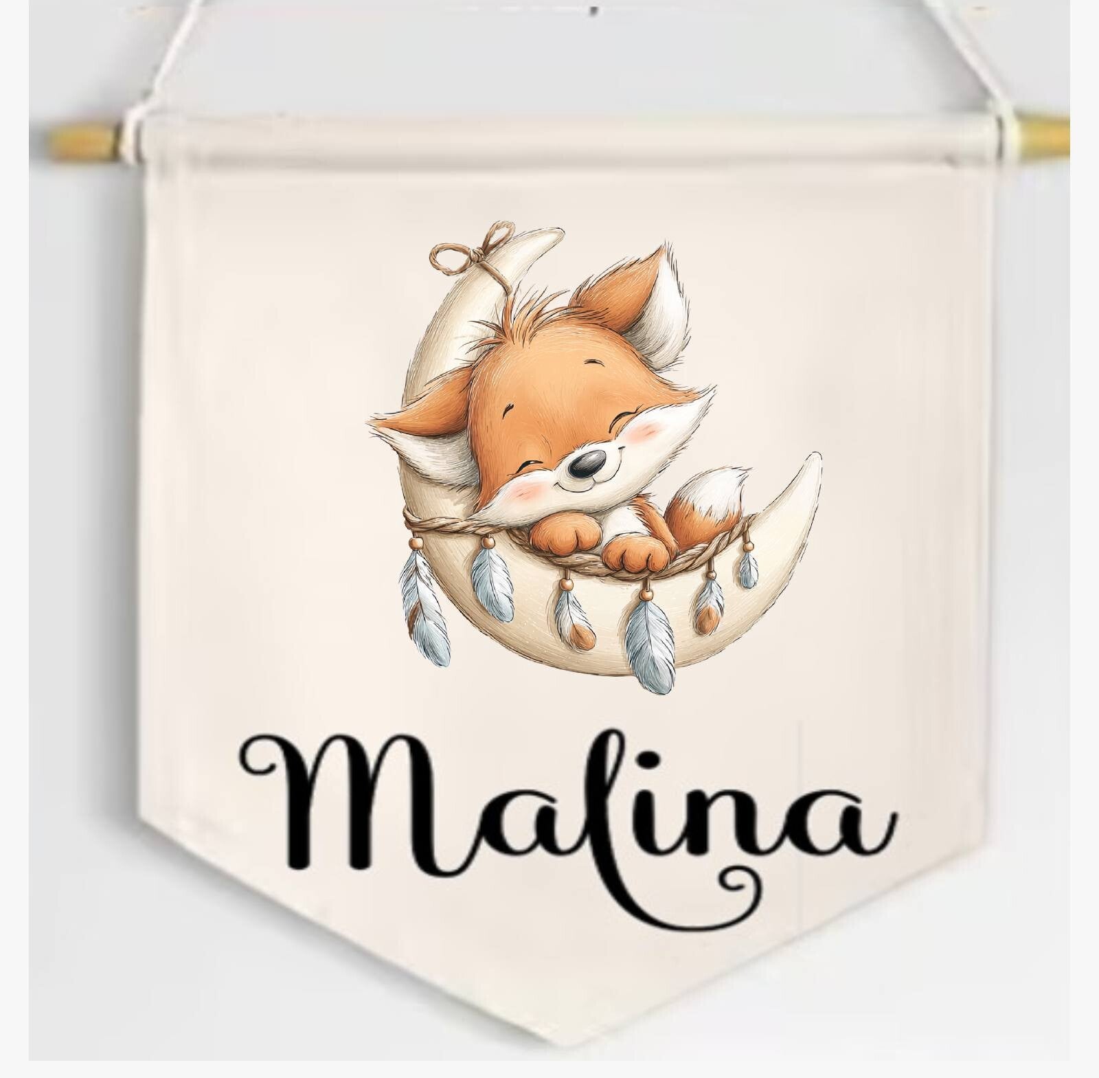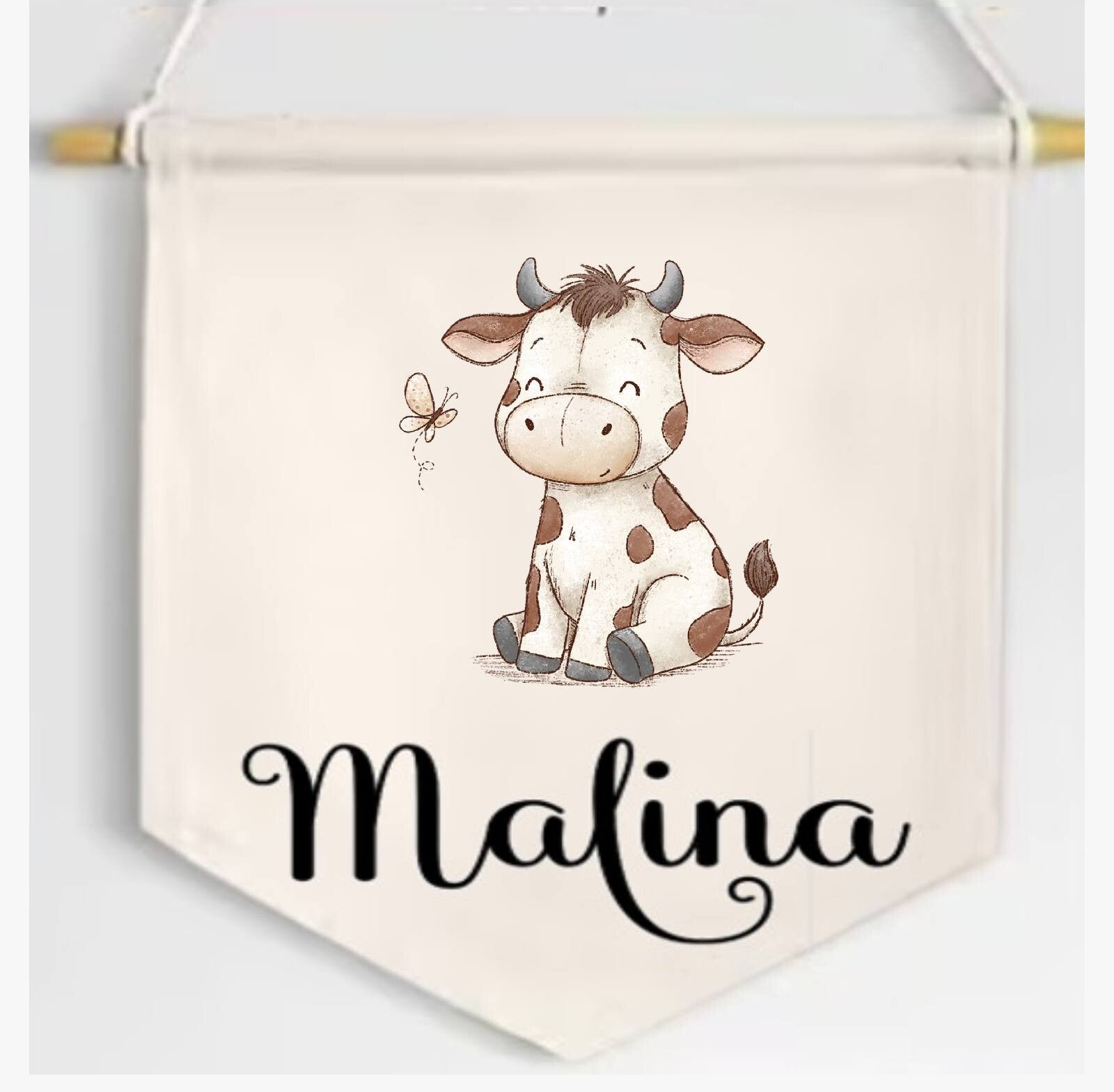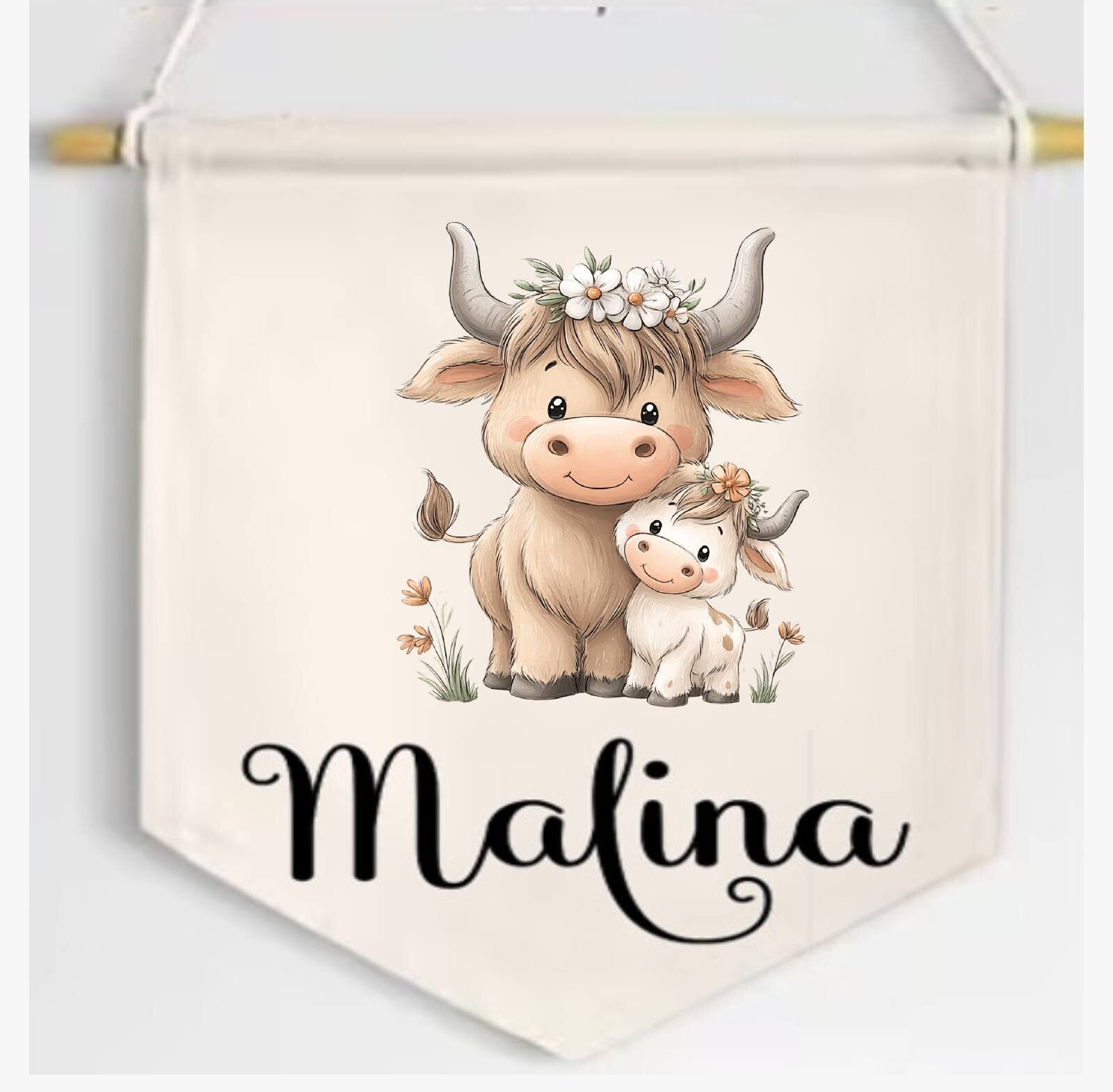 - Namens-Wimpel (ca.25cm hoch ohne Schnur) für die Tür oder als Deko im Kinderzimmer