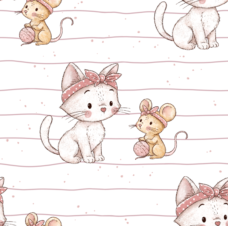 4334 Kitty & Mouse white ALLOVERPRINT