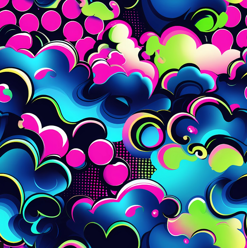 4530 Clouds Graffiti Farbig Crazy ALLOVERPRINT